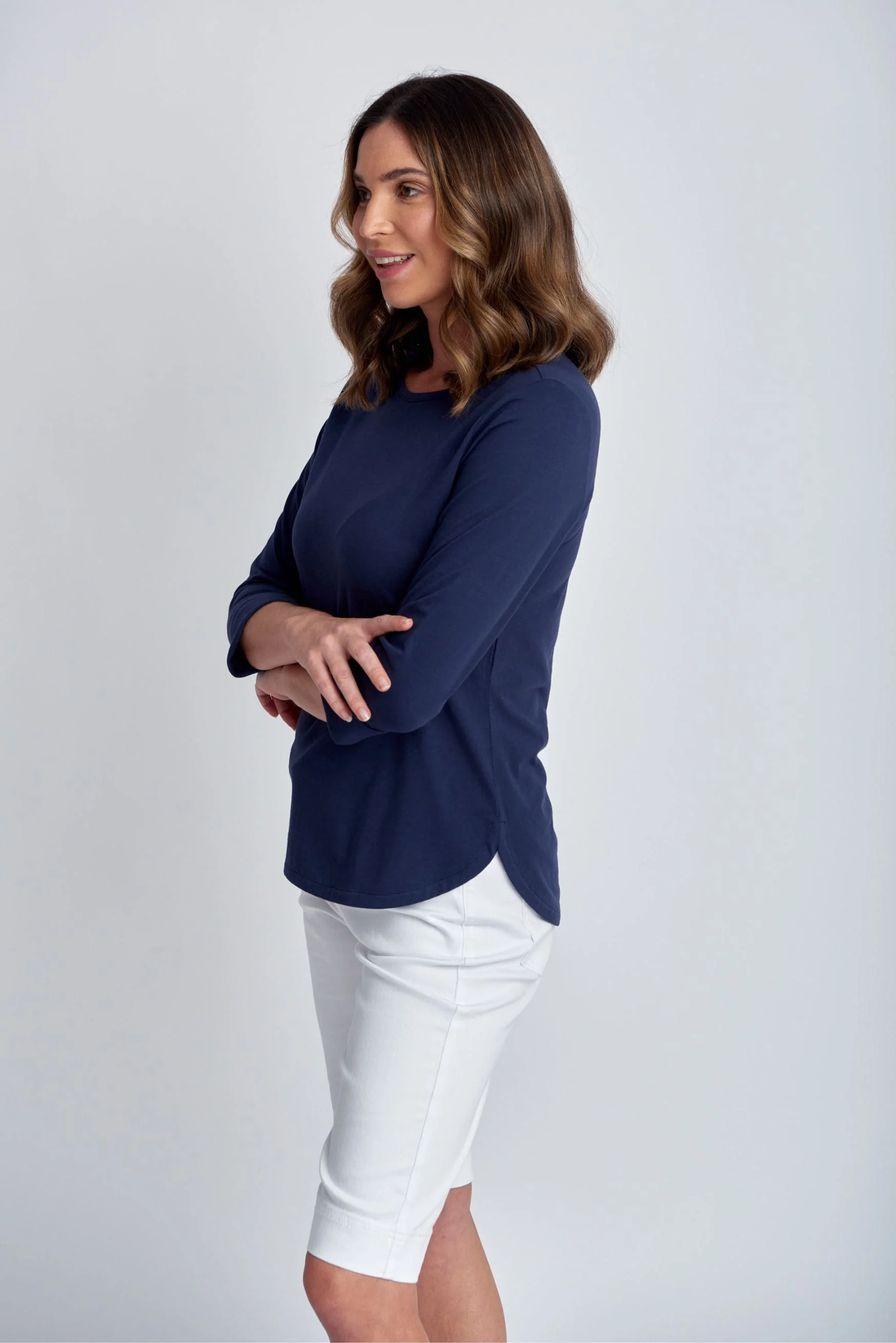 Goondiwindi Cotton - Pima Cotton Crew Neck 3/4 Sleeve Tee - Navy