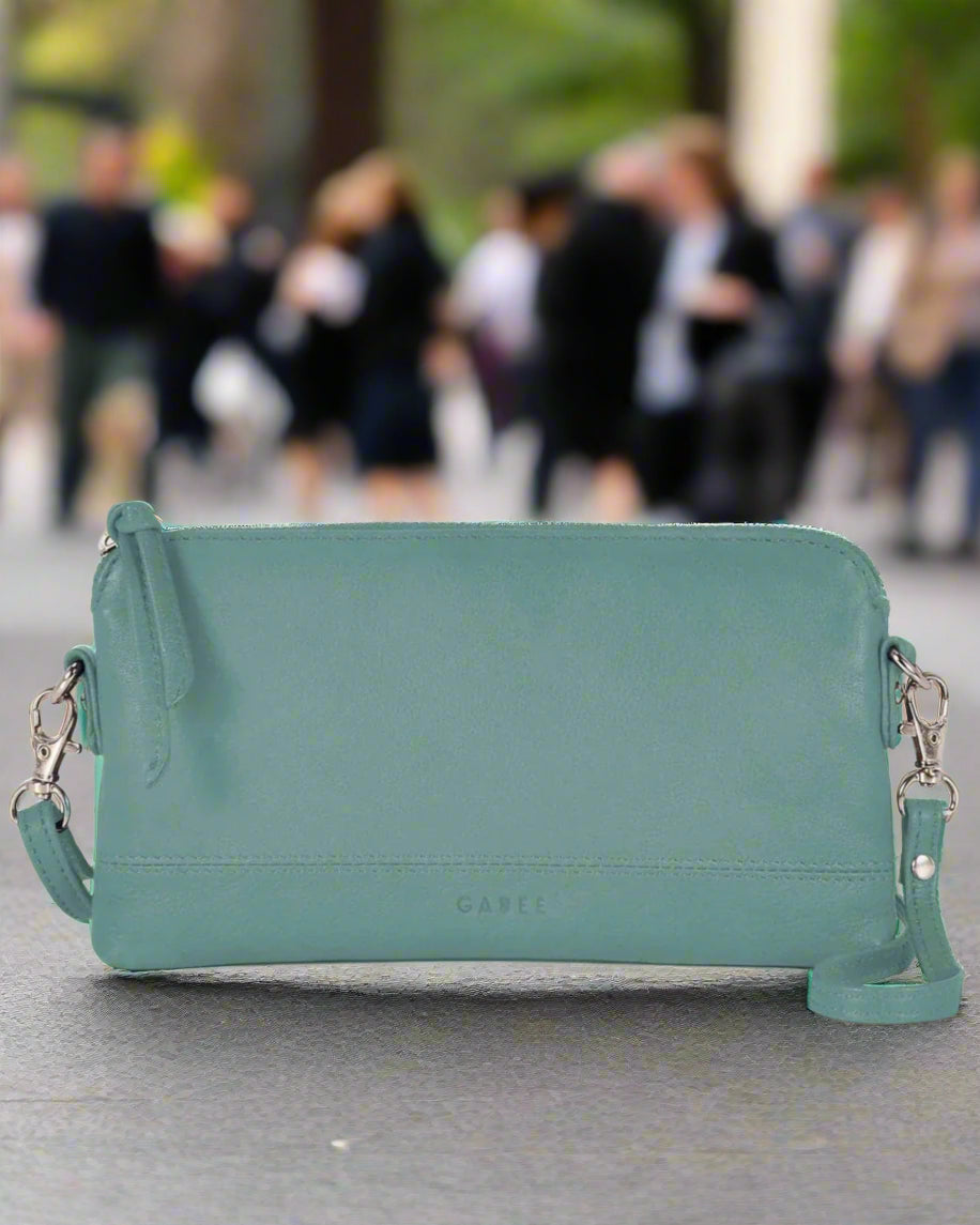 Introducing the Kara Leather Purse with Strap in Ocean, a stylish and versatile accessory that effortlessly combines a purse and crossbody bag. With its detachable and adjustable strap, you can wear it as a clutch, shoulder bag, or crossbody, adapting to any occasion. Made from soft, natural leather and adorned with silver hardware, the Kara offers ample storage, featuring space for up to 12 credit cards and plenty of room for your essentials like your phone, keys, and cosmetics.