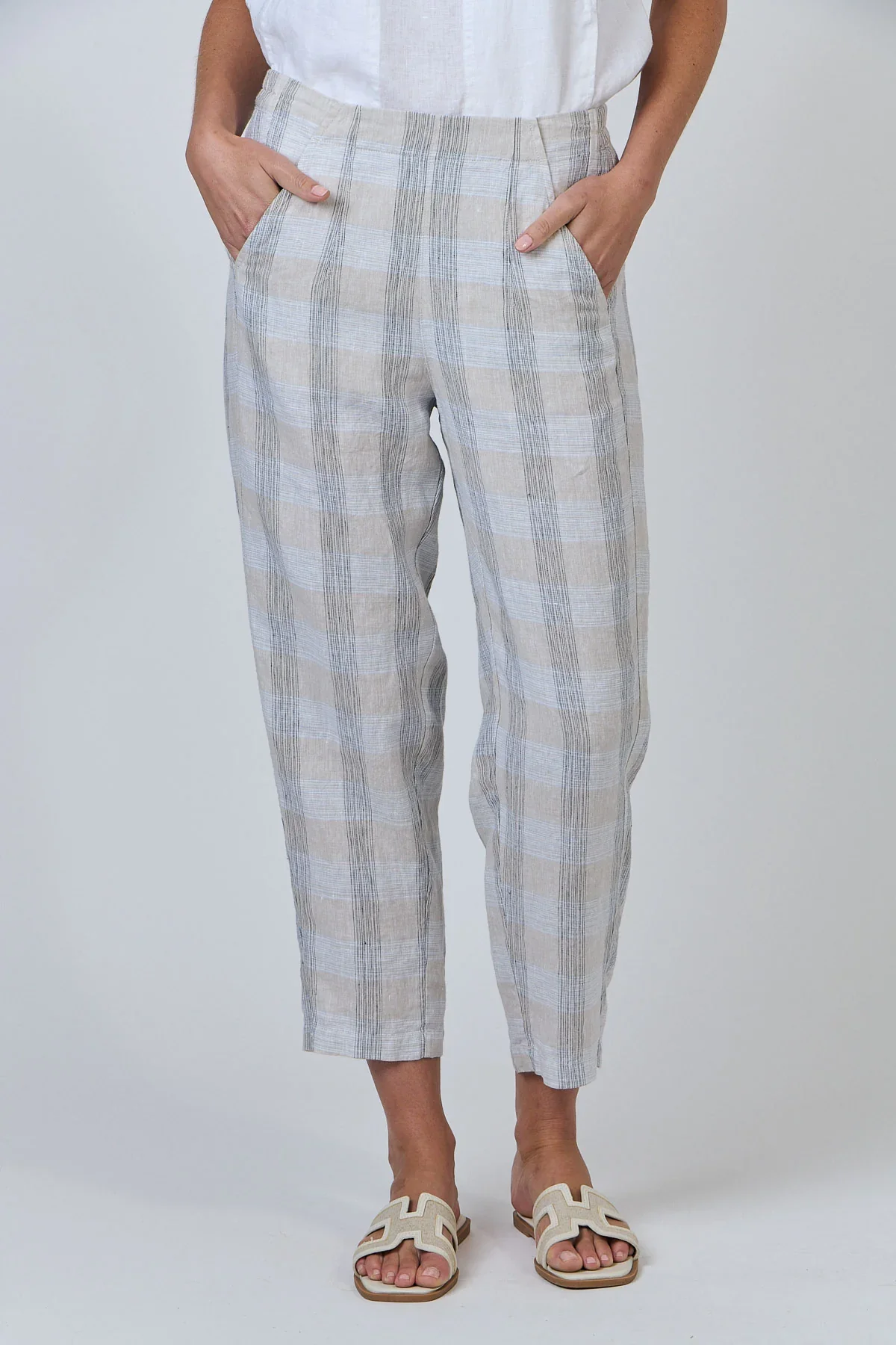 These Naturals by O&J Linen Cropped Trousers in Mesh offer breathable comfort with a stylish cropped design. Crafted from lightweight linen, they are perfect for warmer days, combining natural texture with a modern silhouette. Ideal for both casual and polished looks, these trousers provide ease of movement while maintaining a refined appearance.