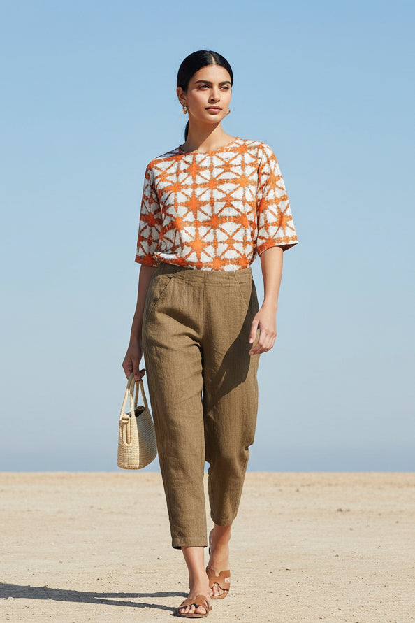 Naturals by O&J Linen Cropped Trousers Tobacco