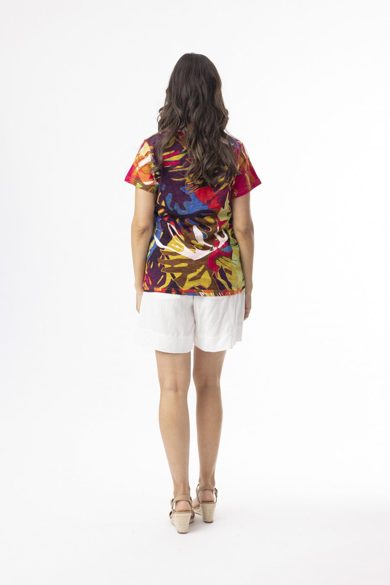 Orientique V-Cut Basic T-Shirt Leaves Red