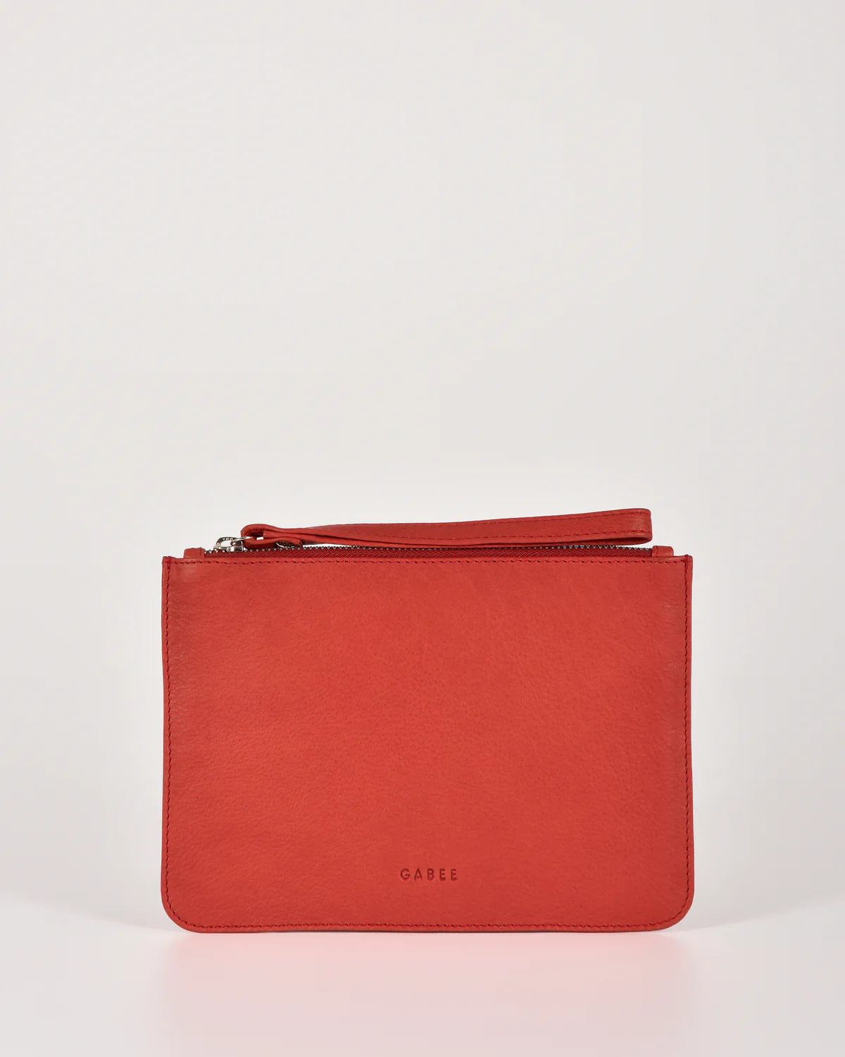 Handcrafted from soft, buttery leather and finished with silver-tone hardware, this pouch is fully lined and detailed with Gabee’s signature stripe lining and internal logo plate.
