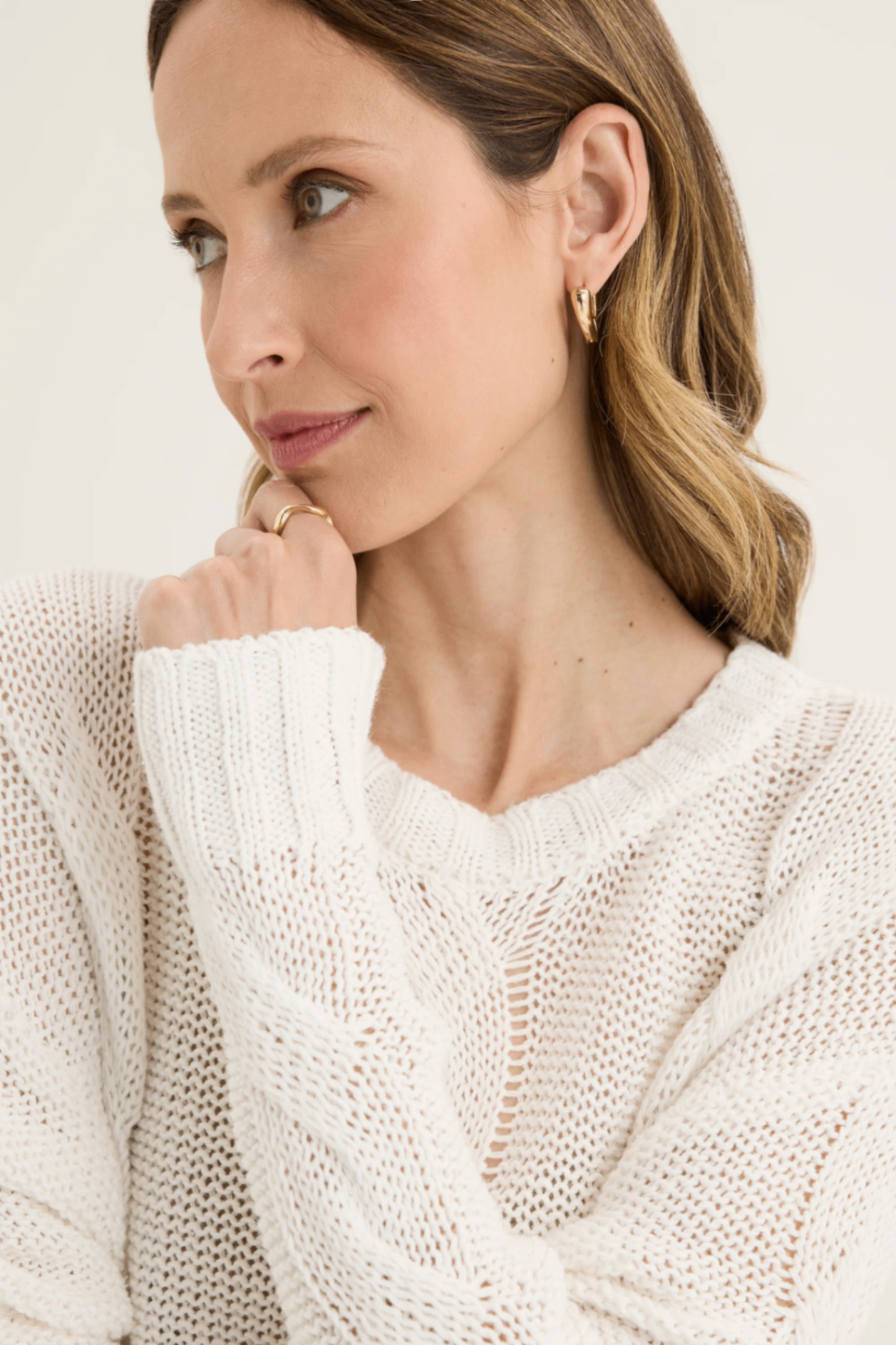 Stay cosy in style with the Yarra Trail Coaxial Jumper in Ecru. Designed with a relaxed fit and flattering high-hip length, this soft knit features a classic crew neckline and chunky cable detailing for a timeless look. Made from a breathable blend of ramie and cotton, it’s the perfect layer for those cooler days.