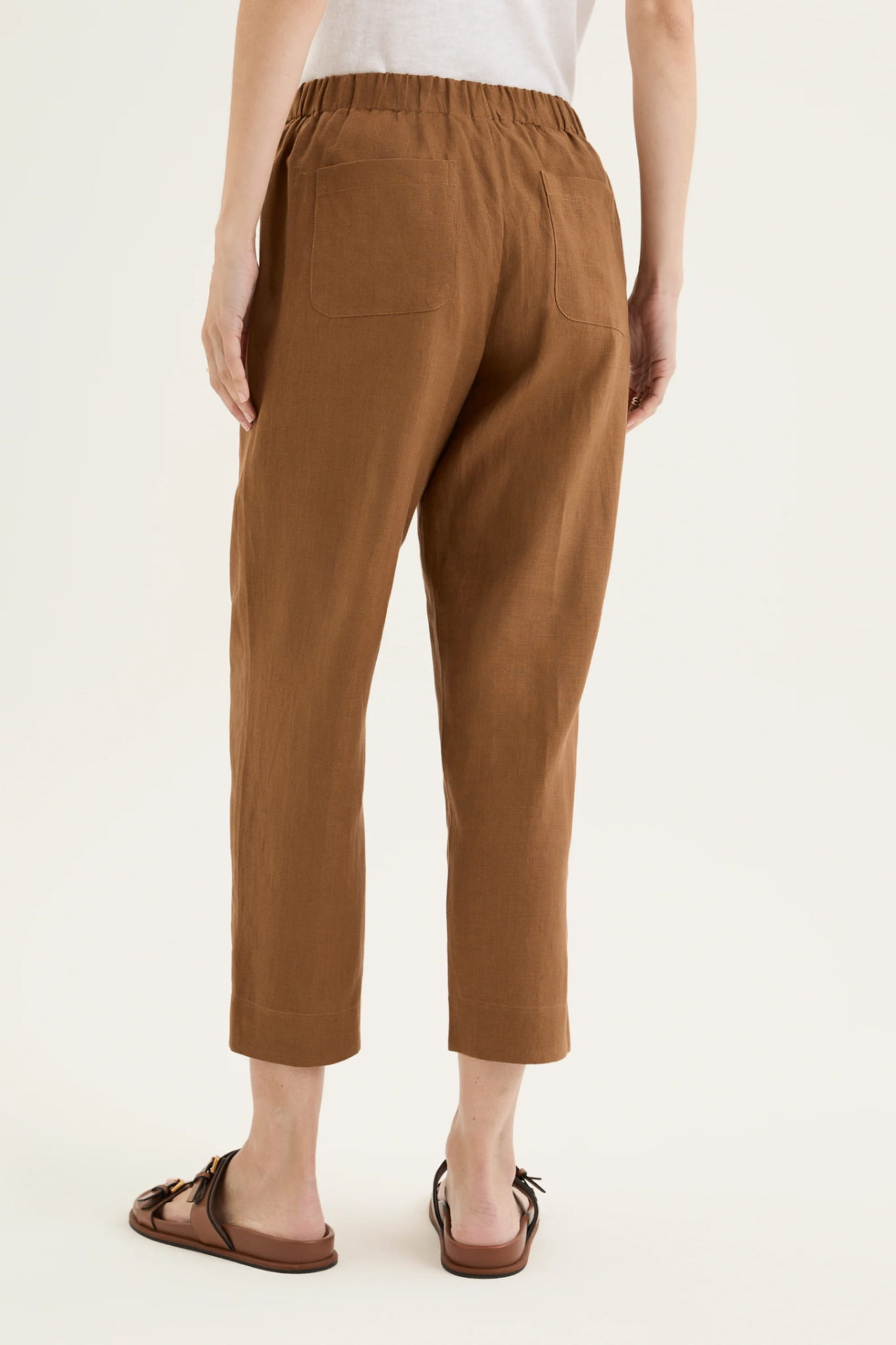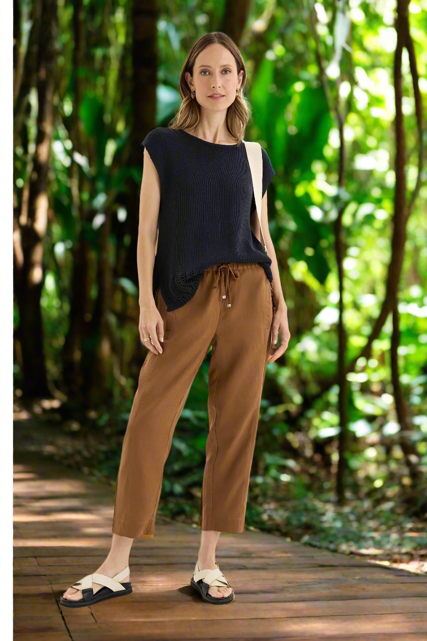 The Tirari Slim Pant in Nutmeg by Yarra Trail is your new go-to for relaxed style with a refined twist. Crafted from breathable 100% linen, it features a comfortable elasticated waistband with a herringbone tie and a flattering slim-leg cut. Thoughtful details like front design panels, functional welt pockets, and back patch pockets elevate this everyday essential. In a rich Nutmeg shade, it’s the perfect piece to dress up or down all season long.